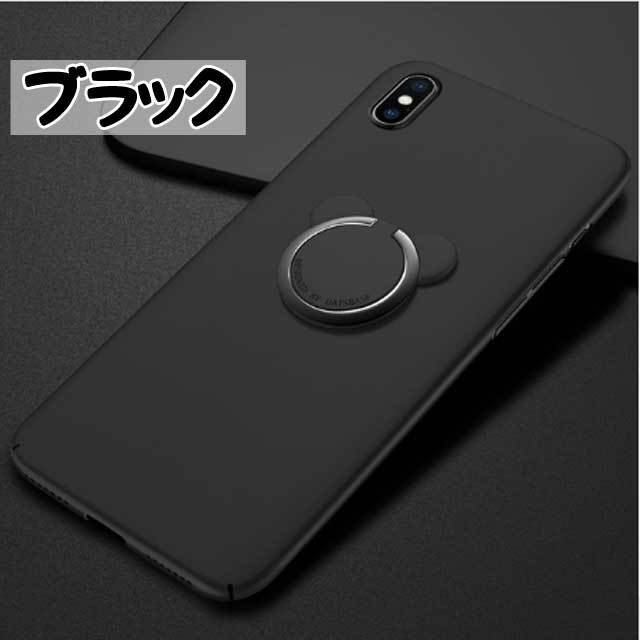 くま リング シンプル iPhone シェルカバー ケース ブラック レッド ピンク ブルー 男女兼用 便利 ビジネス 落下防止 無地 アニマル 可愛い ★ iPhone 7 / 8 / X ★ [MD265]