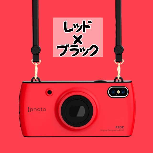 カメラ ストラップ ポップ 可愛い iPhone シェルカバー ケース ブラック ホワイト レッド ピンク ブルー 個性的 お洒落 ユニーク キュート バイカラー ★ iPhone X ★ [MD269]