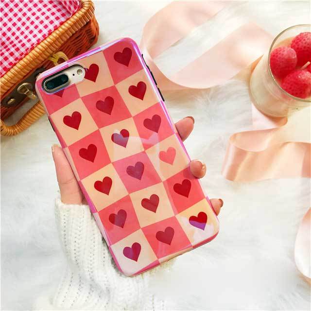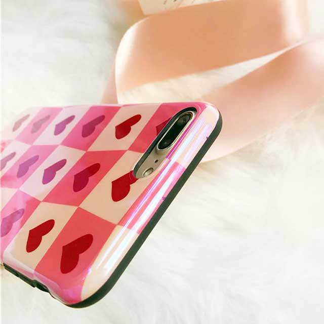 ハート 格子柄 可愛い iPhone シェルカバー ケース レッド ピンク キュート お洒落 ブロック ★ iPhone 6 / 6s / 6Plus / 6sPlus / 7 / 7Plus / 8 / 8Plus / X/ SE(第2世代) ★ [MD271]