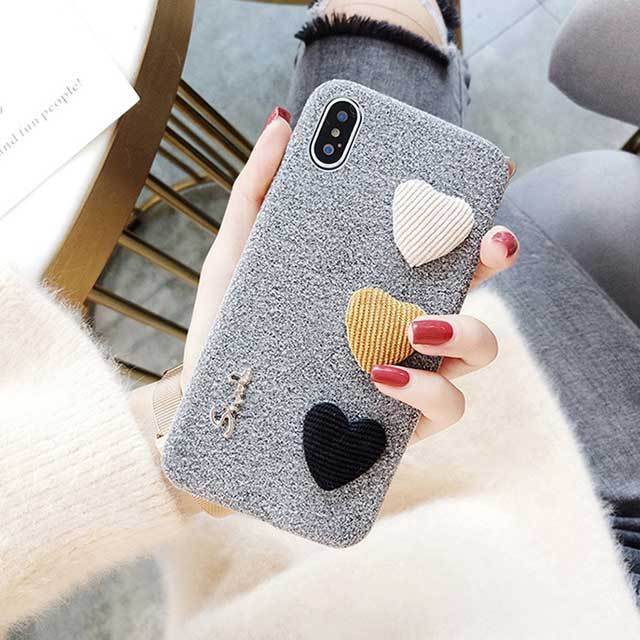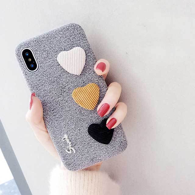 ハート ファブリック 3D iPhone シェルカバー ケース グレー ピンク イエロー ブラック 可愛い ★ iPhone 6 / 6s / 6Plus / 6sPlus / 7 / 7Plus / 8 / 8Plus / X/ SE(第2世代) ★ [MD295]