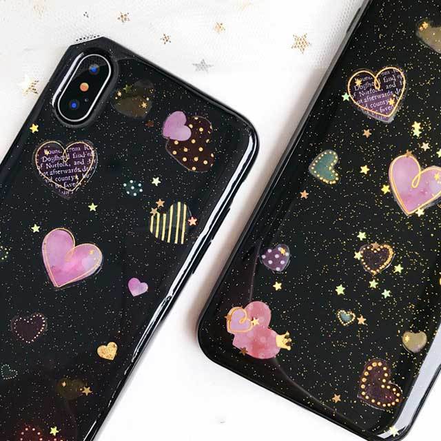 ハート 可愛い 乙女 iPhone シェルカバー ケース ブラック クリア パステル お洒落 キュート ★ iPhone 6 / 6s / 6Plus / 6sPlus / 7 / 7Plus / 8 / 8Plus / X/ SE(第2世代) ★ [MD304]