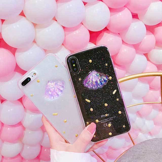 貝殻、星の砂のデザインが可愛いシェル型iPhoneケースです。