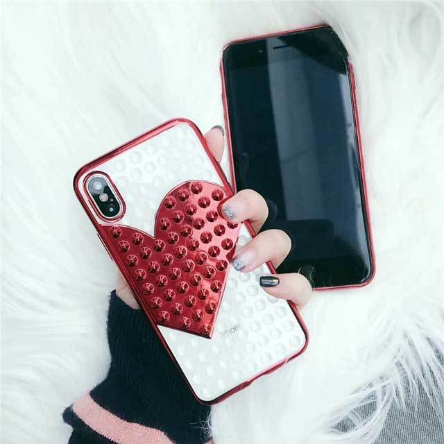 ハート メタル クリア iPhone シェルカバー ケース スタッズ 可愛い カジュアル オトナ ★ iPhone 6 / 6s / 6Plus / 6sPlus / 7 / 7Plus / 8 / 8Plus / X /SE(第2世代)★ [MD336]