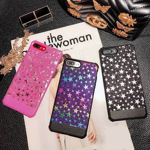 星 キラキラ ラメ iPhone シェルカバーケース ブラック ピンク パープル ポップ 可愛い クール ★ iPhone 6 / 6s / 6Plus / 6sPlus / 7 / 7Plus / 8 / 8Plus / X /SE(第2世代)★ [MD337]