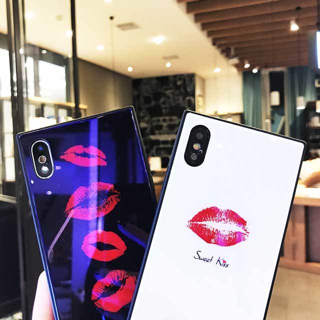 キスマーク スクエア 可愛い iPhone シェルカバー ケース ホワイト ブルー お洒落 クール セクシー シンプル ★ iPhone 7 / 7Plus / 8 / 8Plus / X /SE(第2世代)★ [MD356]