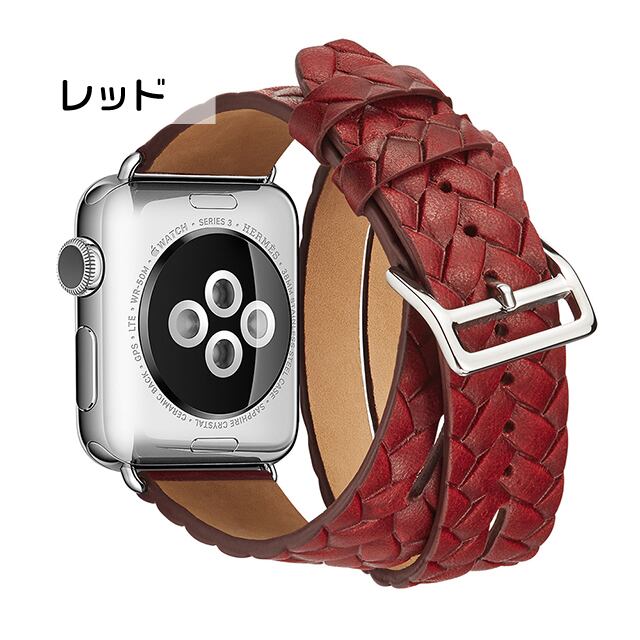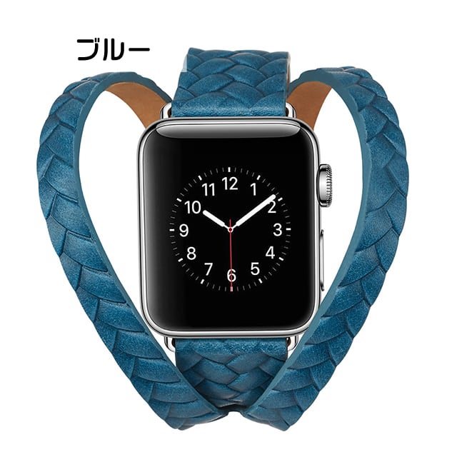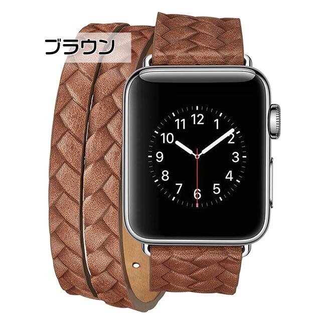 ダブルループ 編み込み 本革 アップルウォッチ 替えベルト バンド ( ブラック レッド ブラウン オレンジ グリーン ブルー ) ブレスレット シンプル ナチュラル ★Apple Watch belt 38mm/42mm ★ [NW541]