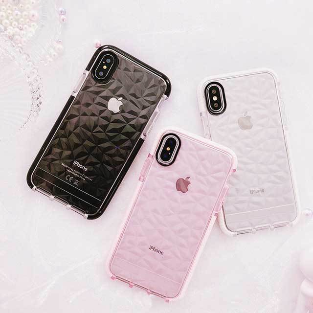 クリア ダイヤモンドカット 可愛い iPhone シェルカバー ケース ブラック ホワイト ピンク お洒落 男女兼用 ★ iPhone 6 / 6s / 6Plus / 6sPlus / 7 / 7Plus / 8 / 8Plus / X / SE(第2世代)★ [MD391]