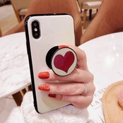 ケースと同じハートの柄のグリップトック付きでとっても便利!