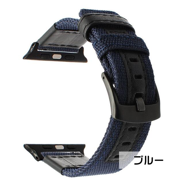 キャンバス 生地 本革 カジュアル アップルウォッチ 替えベルト バンド ( ブラック レッド グリーン ブルー ) スポーティ ユニセックス ★Apple Watch belt 38mm/42mm ★ [NW590]