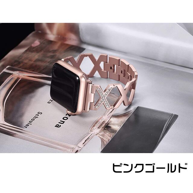 [一部即納あり]クロスデザイン X クリスタル ストーン アップルウォッチ 替えベルト バンド ( ブラック ゴールド シルバー ピンクゴールド ) ★Apple Watch belt 38mm/42mm ★ [NW591]