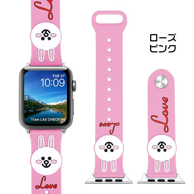 うさぎ キュート イラスト アップルウォッチ 替えベルト バンド ( ホワイト グレー ピンク ローズピンク ) ★Apple Watch belt 38mm/42mm/40mm/44mm ★ [NW654]