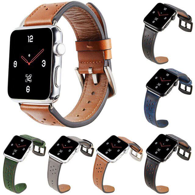 [一部即納あり]本革 パンチング バイカラー アップルウォッチ 替えベルト バンド( ブラック グレー オレンジ ブルー グリーン ) ★Apple Watch belt 38mm/42mm ★ [NW656]