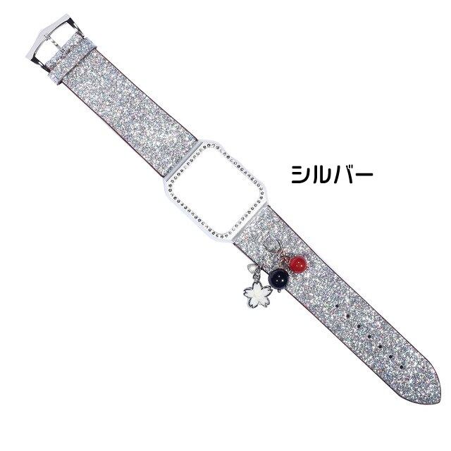 グリッター チャーム付き アップルウォッチ 替えベルト バンド ( ブラック ゴールド シルバー レッド ピンク ) ★Apple Watch belt 38mm/42mm★ [NW680]