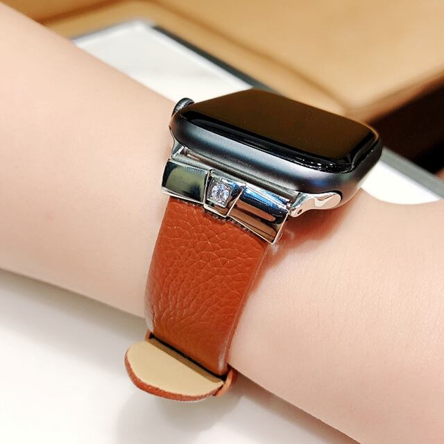 ワンポイントのクリスタルがきらめくアップルウォッチ用替えベルトです。