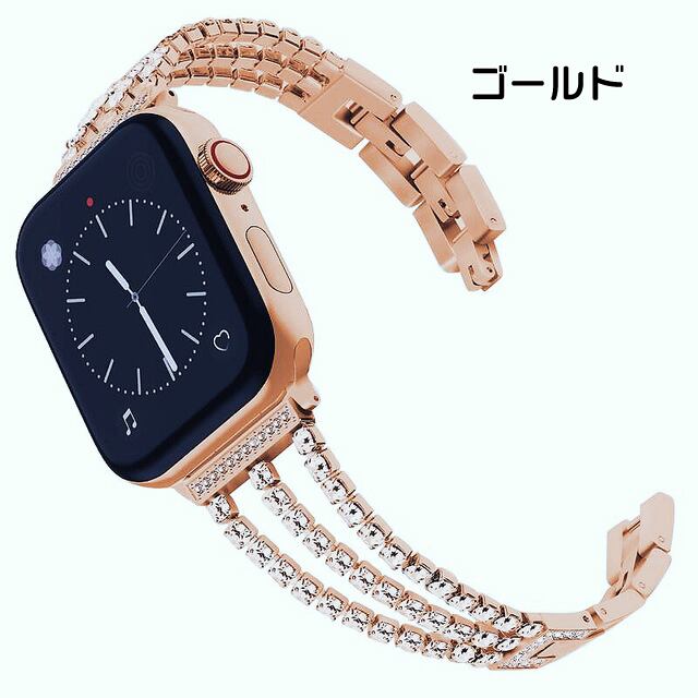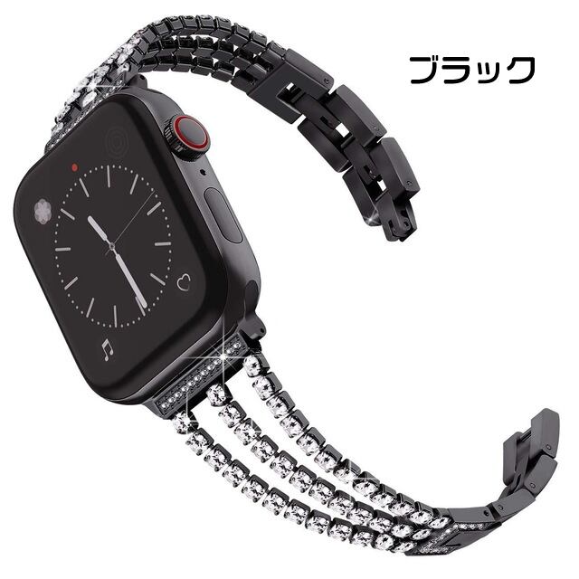 エレガント クリスタル ラインストーン アップルウォッチ 替えベルト バンド ( ブラック ゴールド シルバー ) ★Apple Watch belt 38mm/42mm/40mm/44mm ★ [NW737]