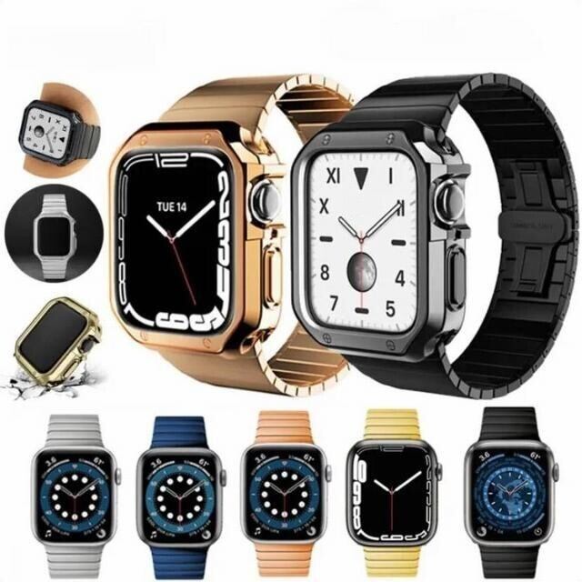 ステンレス メタル シンプル アップルウォッチ バンパーケース+ステンレスバンド お得セット ★Apple Watch belt 38mm/41mm/42mm/40mm/44mm/45mm ★ [MO001]