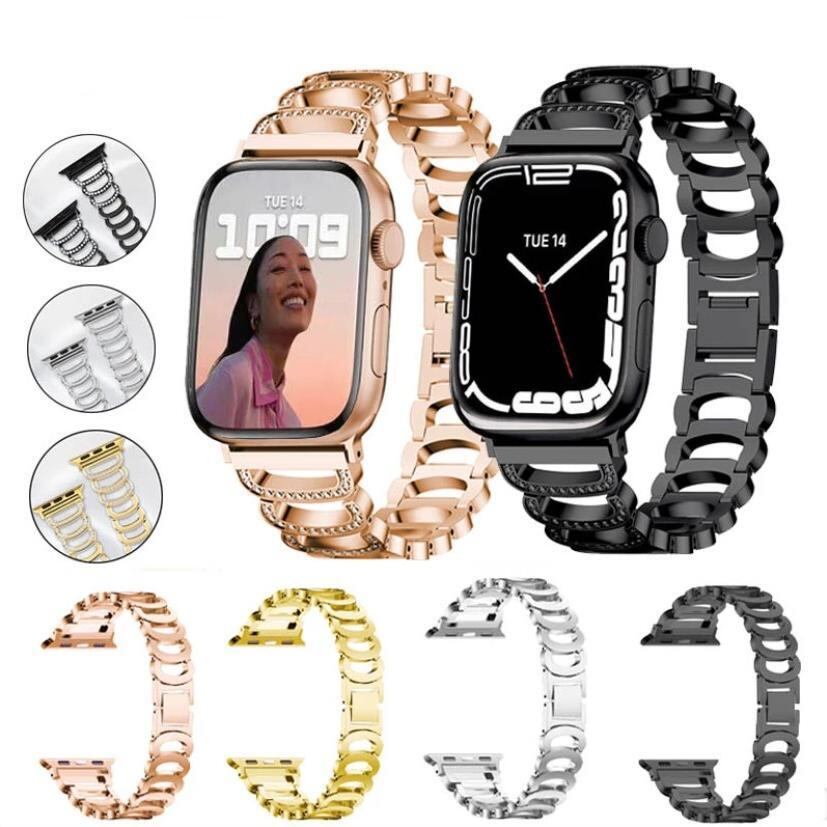 ラインストーン ステンレス ラウンドループデザイン エレガント 上品 アップルウォッチ 替えベルト バンド ★Apple Watch belt 38mm/41mm/42mm/40mm/44mm/45mm ★ [MO002]