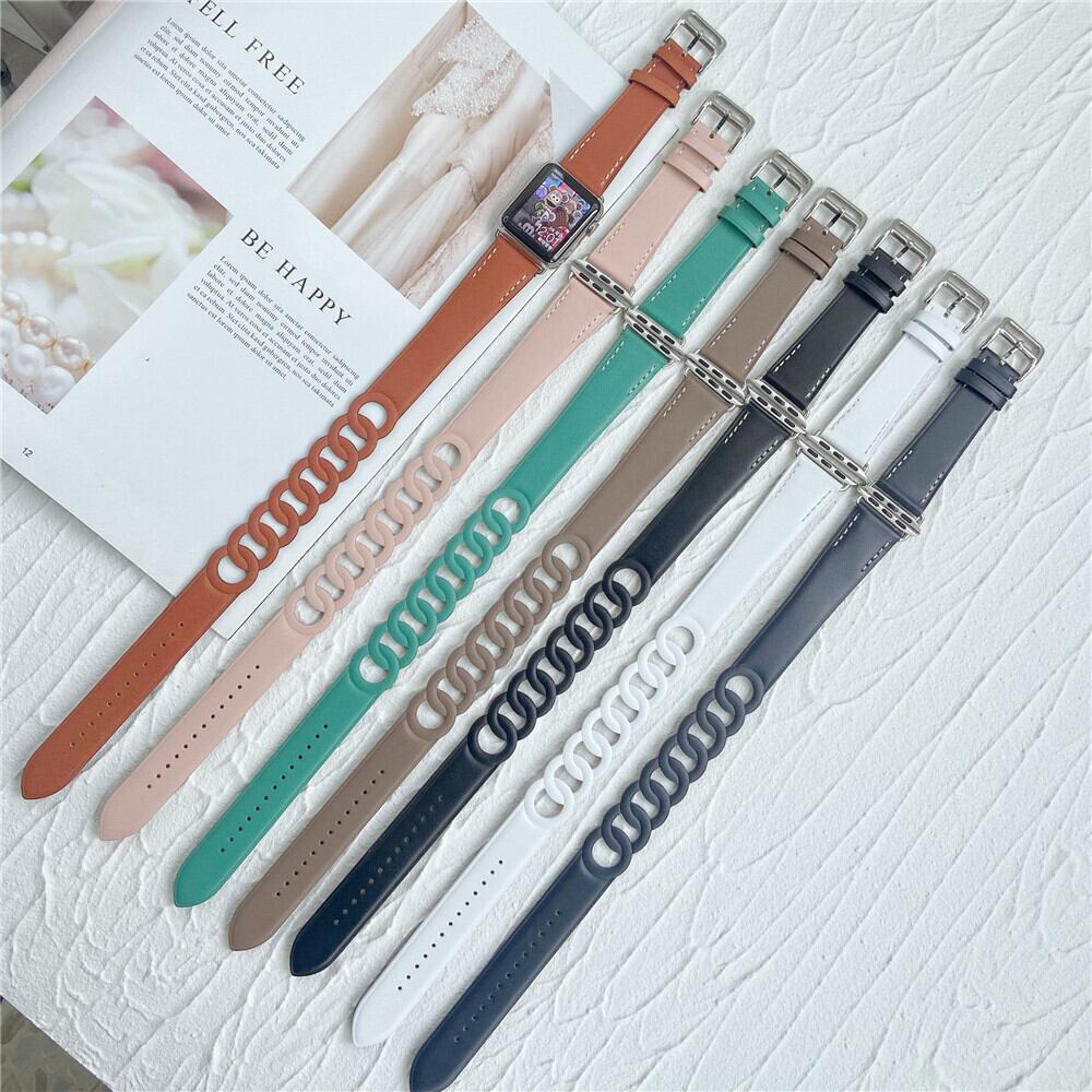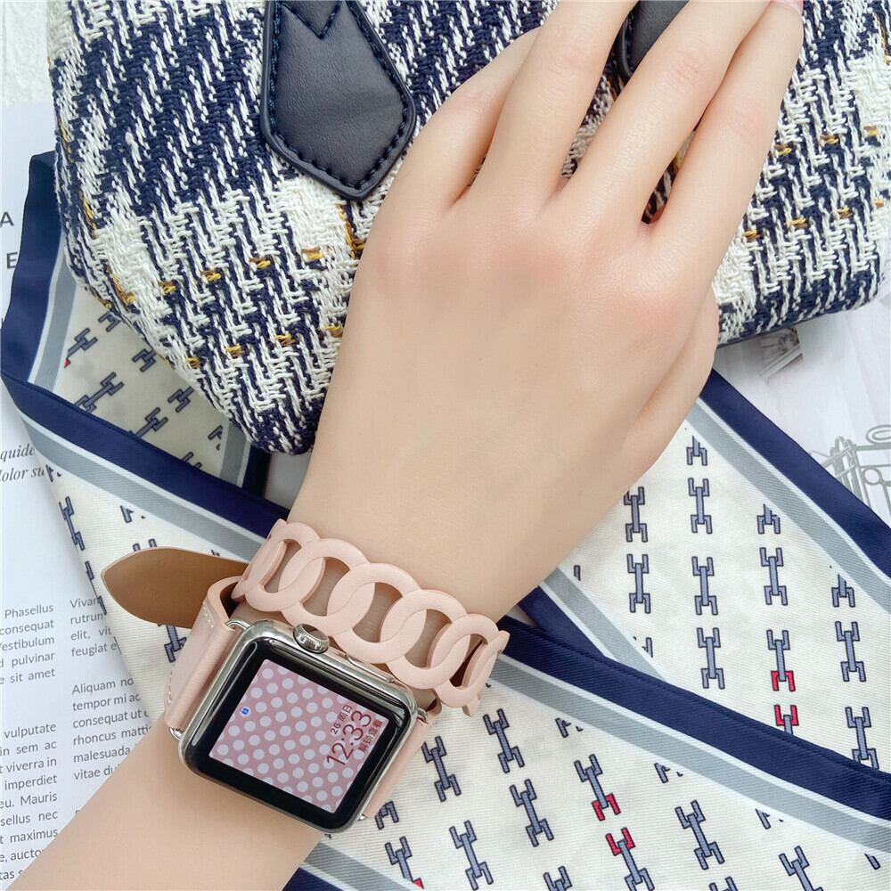 レザーベルト チェーンデザイン ダブルループ アップルウォッチ 替えベルト バンド ★Apple Watch belt 38mm/41mm/42mm/40mm/44mm/45mm ★ [MO003]