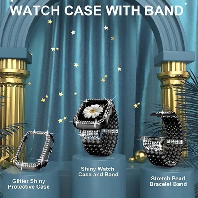 パールビーズ キラキラ ラインストーン アップルウォッチ 替えベルト バンパーケース ★Apple Watch belt 38mm/41mm/42mm/40mm/44mm/45mm ★ [MO007]