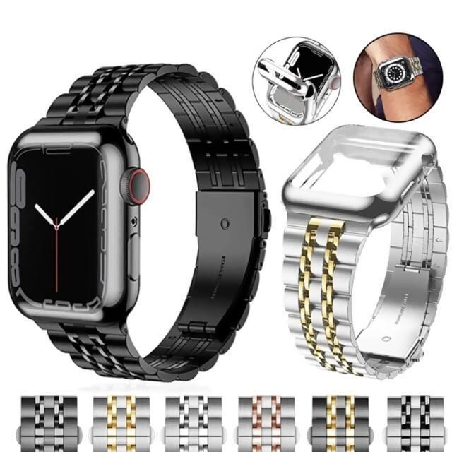 ラインアクセント メタル クール アップルウォッチ バンパーケース+ステンレスベルト お得セット ★Apple Watch belt 38mm/41mm/42mm/40mm/44mm/45mm ★ [MO008]