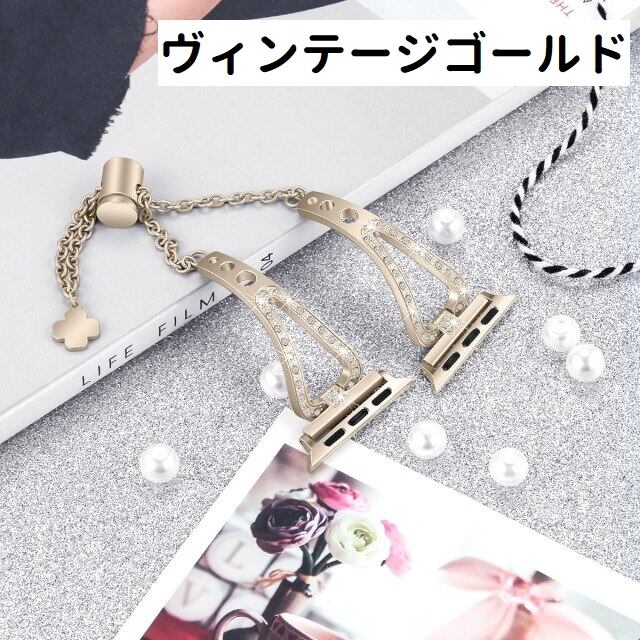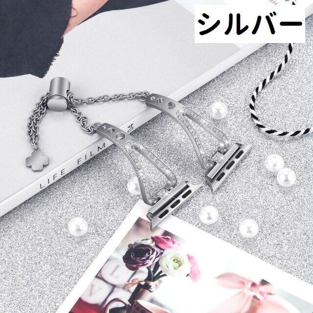 高級感 ブレスレット クローバーチャーム ラインストーン サイズ調整可能 アップルウォッチ 替えベルト ★Apple Watch belt 38mm/41mm/42mm/40mm/44mm/45mm ★ [MO047]
