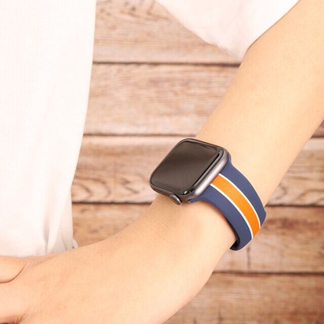 [一部即納あり]バイカラー シリコンバンド 装着簡単 ライン アップルウォッチ 替えベルト★Apple Watch belt 38mm/41mm/42mm/40mm/44mm/45mm ★ [MO058]
