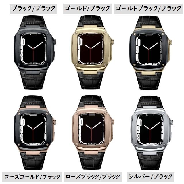 クロコダイル風 レザー&ステンレス 高級感 アップルウォッチ バンパーケース+替えベルト セット★Apple Watch belt 40mm/44mm ★ [MO063]