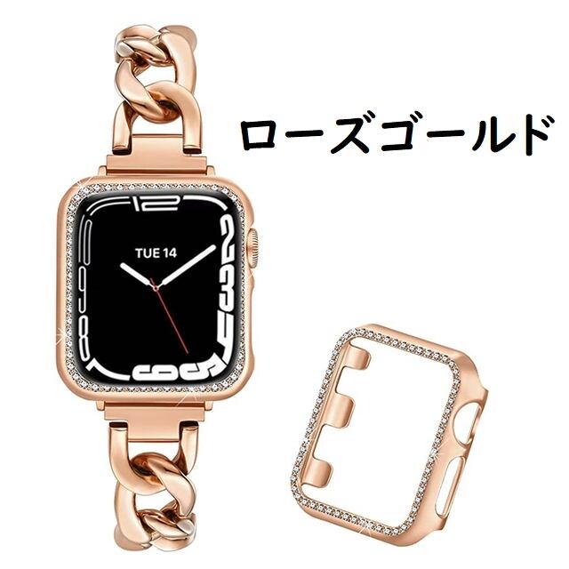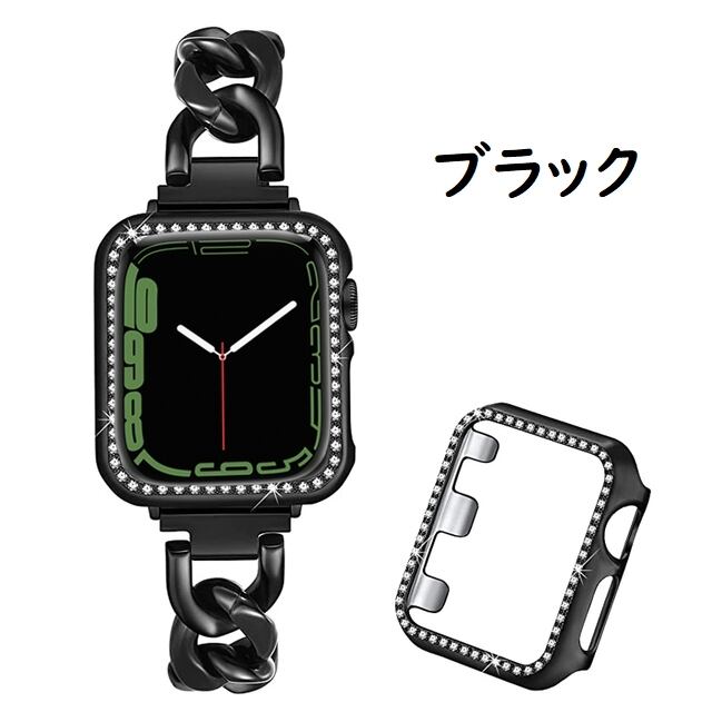 チェーンデザイン 切り替え メタル ラインストーン 大人可愛い アップルウォッチ バンパーケース+替えベルト セット ★Apple Watch belt 38mm/41mm/42mm/40mm/44mm/45mm ★ [MO072]