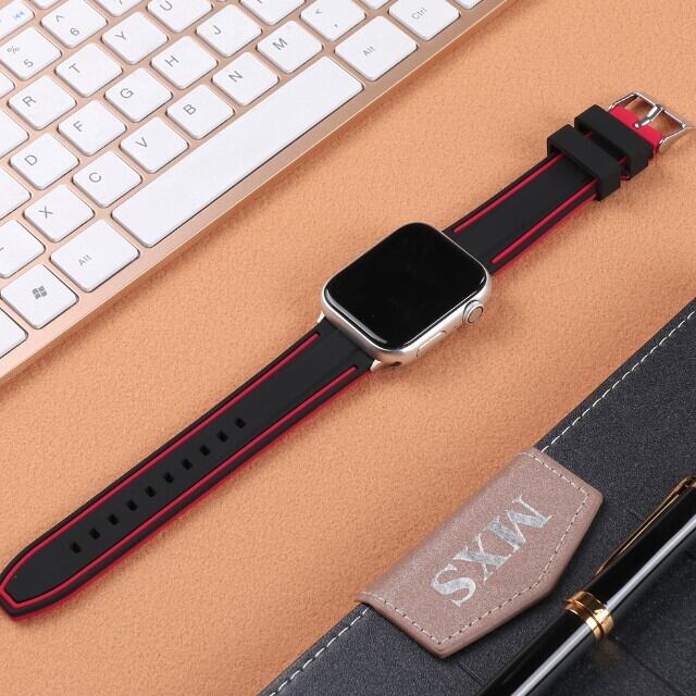 シリコンベルト ラインアクセント スポーティー シンプル アップルウォッチ 替えベルト ★Apple Watch belt 38mm/41mm/42mm/40mm/44mm/45mm ★ [MO075]