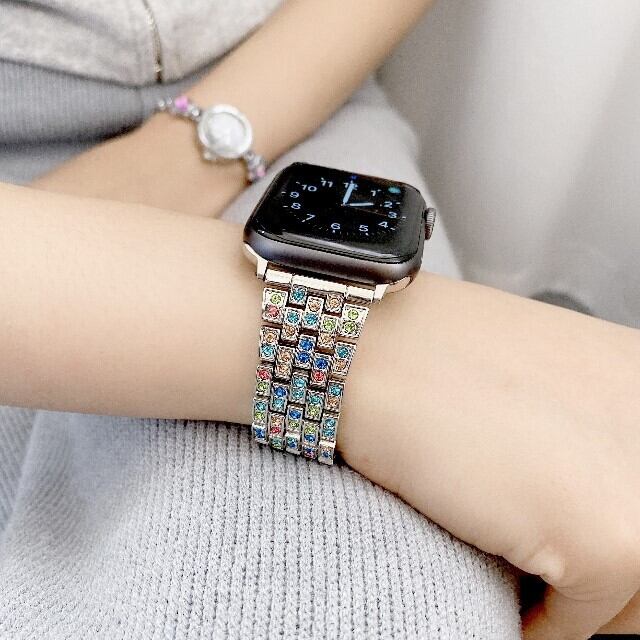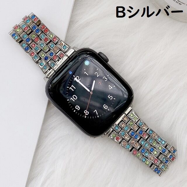 カラフル ラインストーン メタリック 華やか 個性的 アップルウォッチ 替えベルト ★Apple Watch belt 38mm/41mm/42mm/40mm/44mm/45mm ★ [MO084]