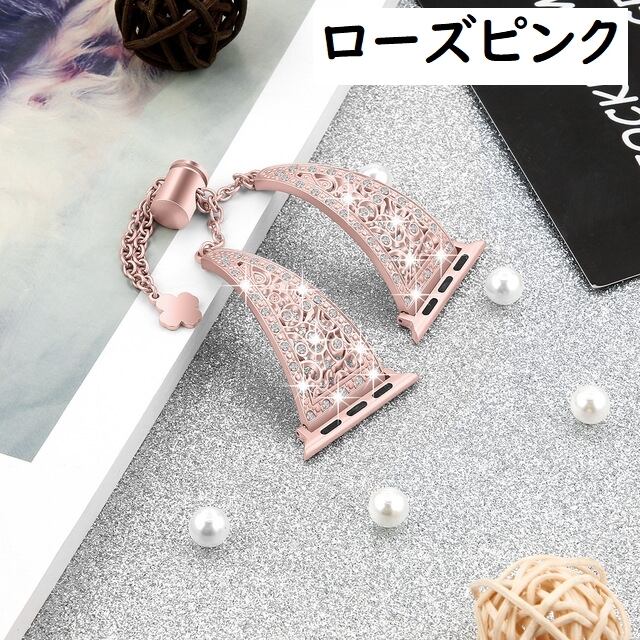 高見え ブレスレット ラインストーン クローバーチャーム アップルウォッチ 替えベルト ★Apple Watch belt 38mm/41mm/42mm/40mm/44mm/45mm ★ [MO104]