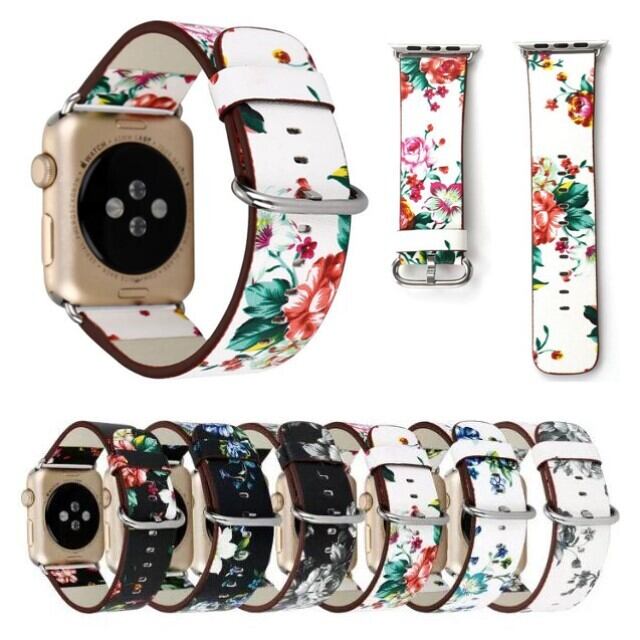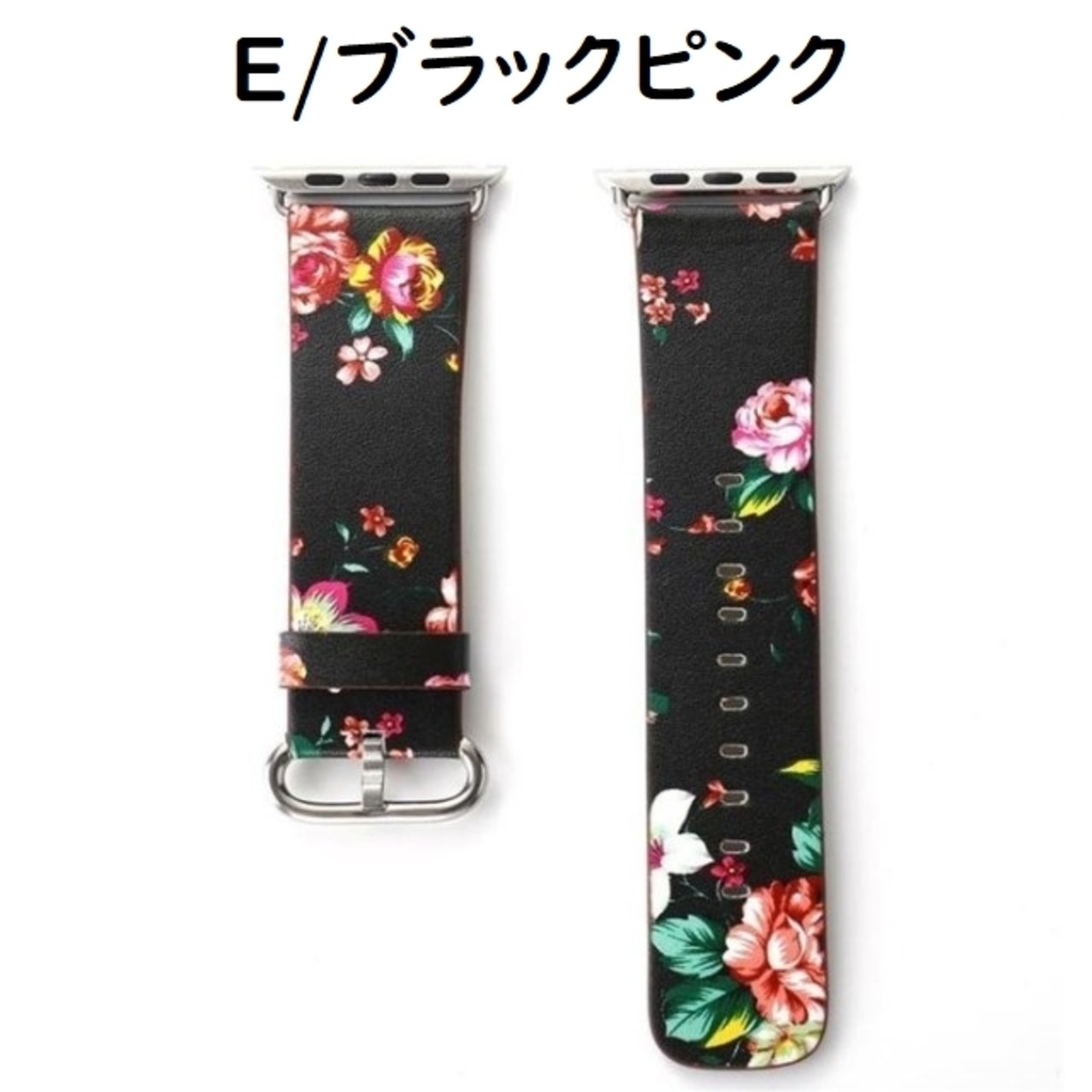 フラワープリント レザーベルト 花柄 フェミニン ガーリー アップルウォッチ 替えベルト ★Apple Watch belt 38mm/41mm/42mm/40mm/44mm/45mm ★ [MO117]