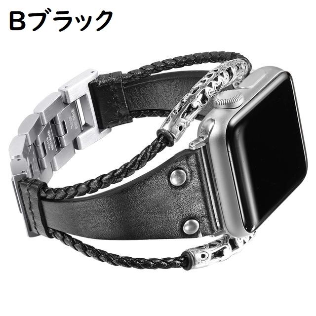 レザー×ステンレススチール 民族調 フォークスタイル ウエスタン 切り替えデザイン アップルウォッチ 替えベルト ★Apple Watch belt 38mm/41mm/42mm/40mm/44mm/45mm ★ [MO120]