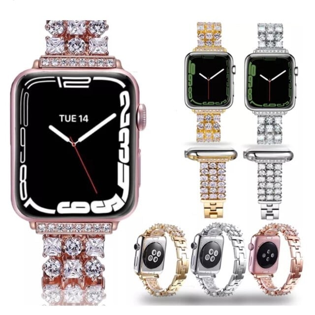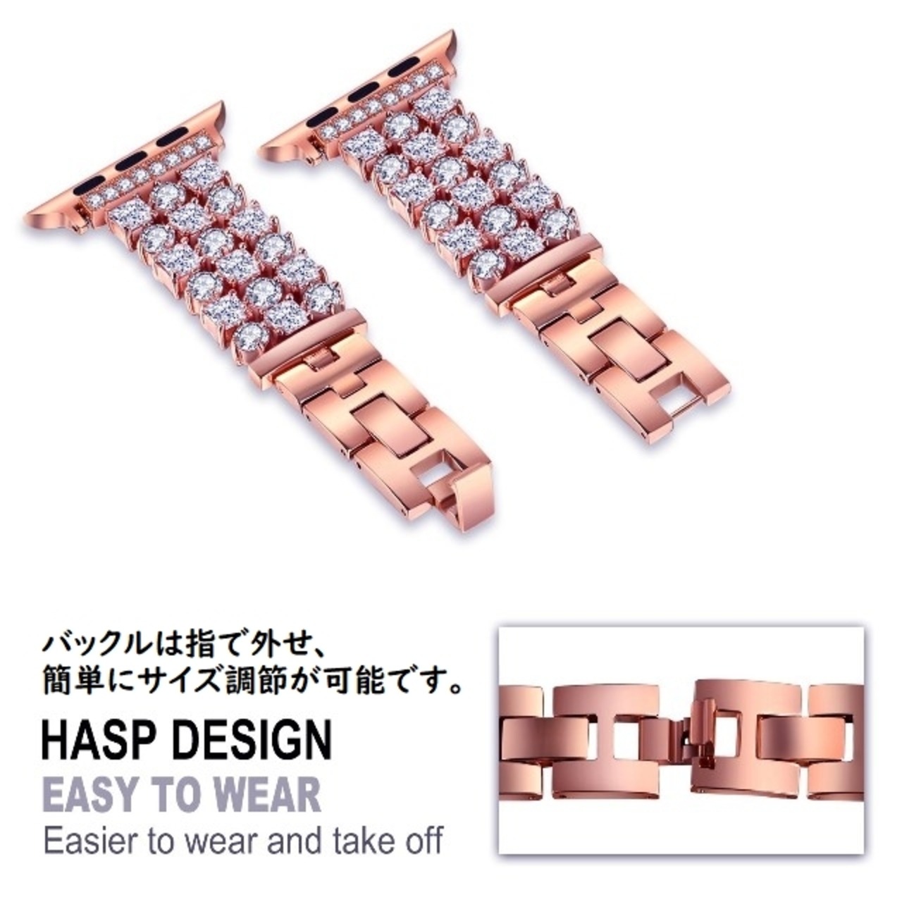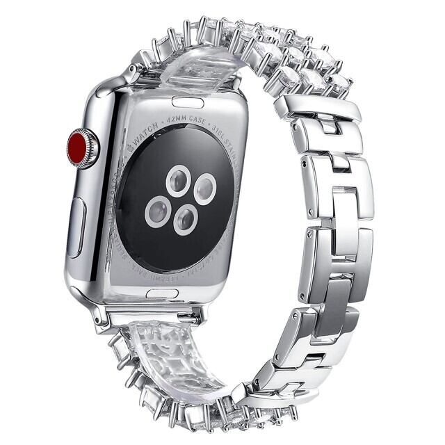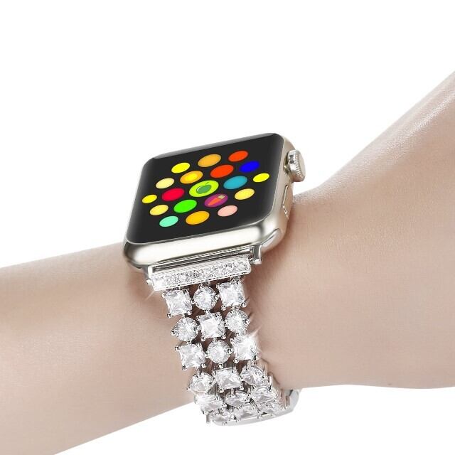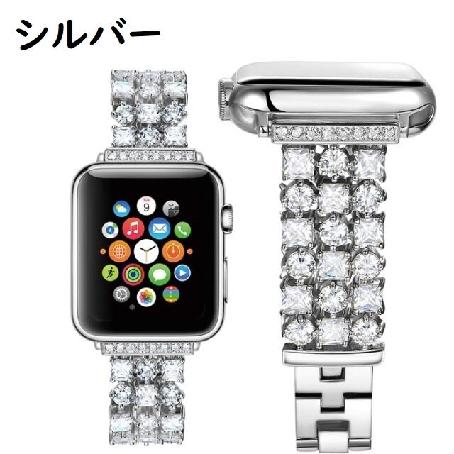 3列ラインストーン ステンレススチール メタル ブレスレット ラグジュアリー アップルウォッチ 替えベルト ★Apple Watch belt 38mm/41mm/42mm/40mm/44mm/45mm ★ [MO123]