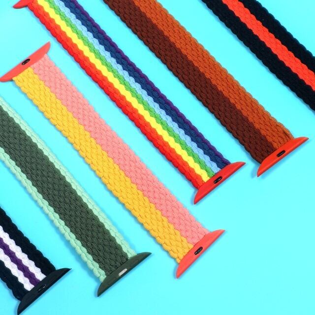 ブレイデッドソロループ シームレス バイカラー カラフル 着脱簡単 弾性 アップルウォッチ 替えベルト ★Apple Watch belt 38mm/41mm/42mm/40mm/44mm/45mm ★ [MO145]