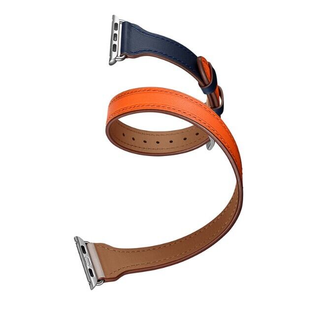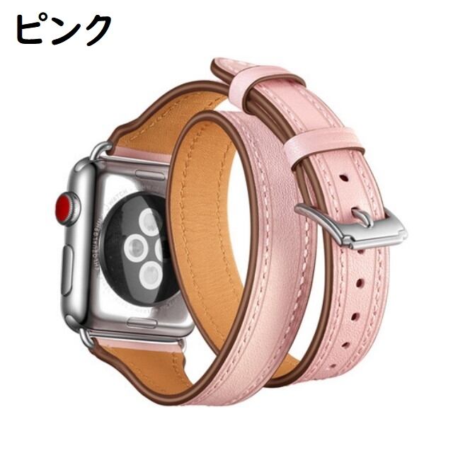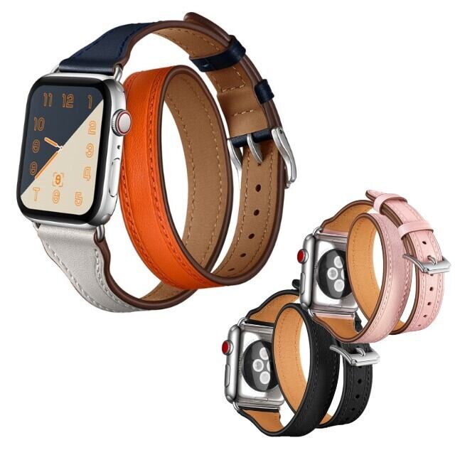ダブルループ 2連 レザー ワンカラー バイカラー 華奢見え アップルウォッチ 替えベルト ★ Apple Watch belt 38mm/42mm/40mm/44mm ★ [MO159]