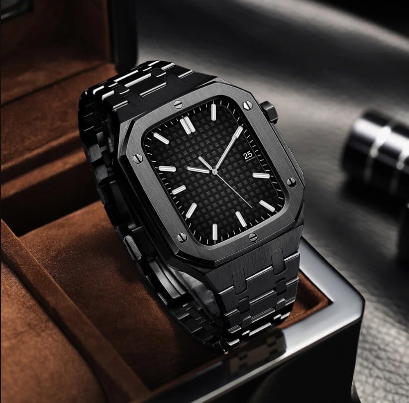 フルメタル ブラック スタイリッシュ ステンレススチール アップルウォッチ バンパーケース+ベルト セット ★Apple Watch belt 42mm/44mm/45mm ★ [MO169]