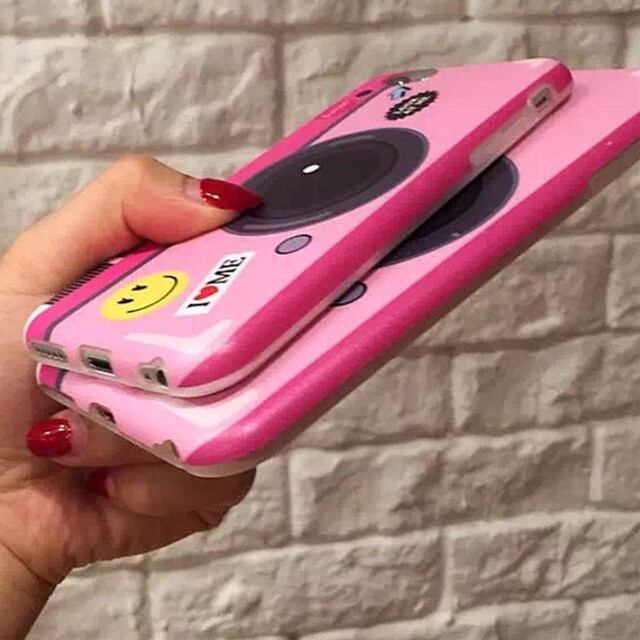 [KS056] ★ iPhone 6 / 6s / 6Plus / 6sPlus / 7 / 7Plus ★ シェル型 ケース ( ピンク ) にこちゃん POP な イラスト と ロゴ が たのしい カメラ 風 iPhoneケース