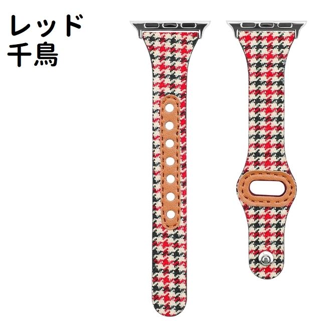 レザー 千鳥柄 チェック柄 総柄 レトロ 穴留め式 アップルウォッチ 替えベルト ★ Apple Watch belt 38mm/40mm/42mm/44mm ★ [MO229]