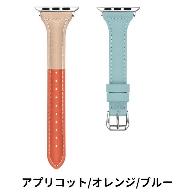 パステルカラー バイカラー レザー 細ベルト 華奢見え アップルウォッチ 替えベルト ★ Apple Watch belt 38mm/40mm/42mm/44mm ★ [MO237]