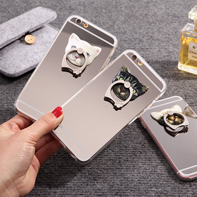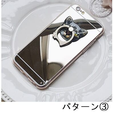 ネコ の リング スタンド iPhone ケース 背面ミラー ★ iPhone 6 / 6s / 6Plus / 6sPlus / 7 / 7Plus ★ [KS086]