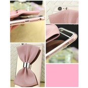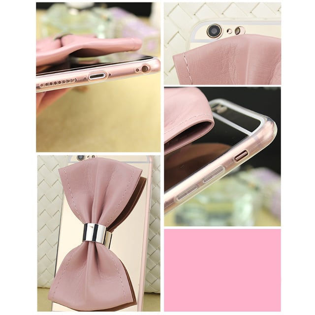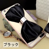 ビッグ リボン 蝶 ネクタイ iPhone ケース ( ブラック ピンク ) きらきら 背面ミラー かわいい ★ iPhone 6 / 6s / 6Plus / 6sPlus / 7 / 7Plus ★ [KS090]