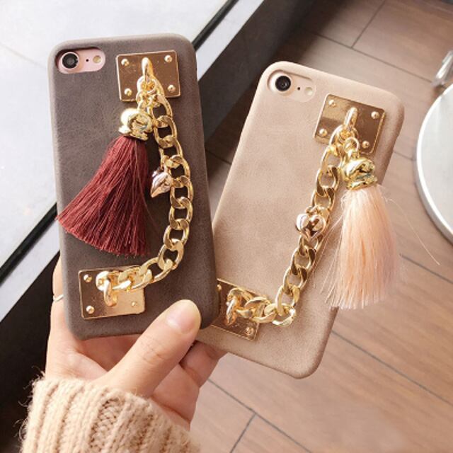 タッセル & ゴールド チェーンのラグジュアリー感が素敵な アンティーク マット レザー 調 iPhoneケースです♪