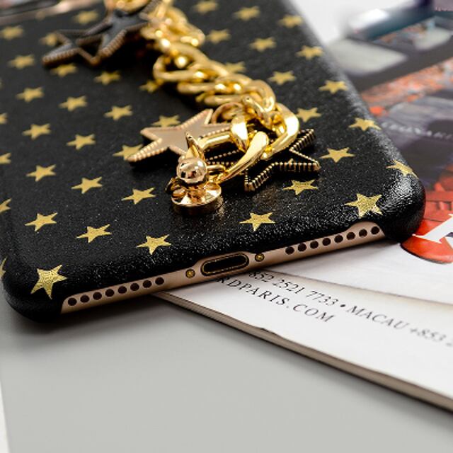 星 チャーム & チェーン iPhone ケース ゴールド ( ブラック ホワイト ) かわいい リトル スター ★ iPhone 6 / 6s / 6Plus / 6sPlus / 7 / 7Plus ★ [KS037]