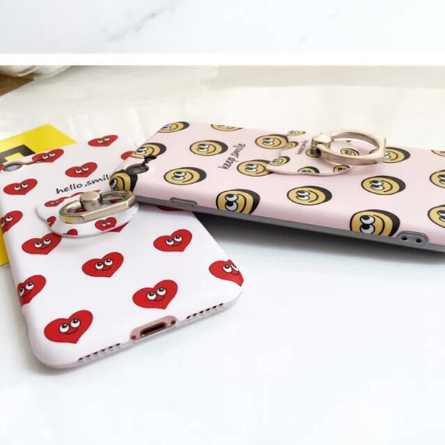 ハート スマイル イラスト iPhone シェル型 ケース かわいい リング スタンド POP ★ iPhone 6 / 6s / 6Plus / 6sPlus / 7 / 7Plus ★ [KS123]
