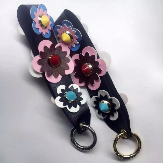 カラフルなフラワーパッチやリベット・スタッズがついたストラップが目を引くシェル型(背面保護タイプ)iPhoneケースです♪