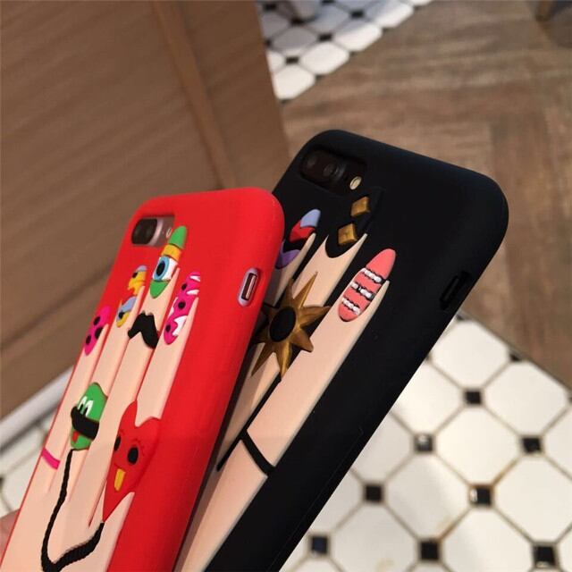 ネイル ポップ な イラスト iPhone シェル型 ケース ユニーク ( ブラック レッド ) ★ iPhone 6 / 6s / 6Plus / 6sPlus / 7 / 7Plus ★ [KS189]