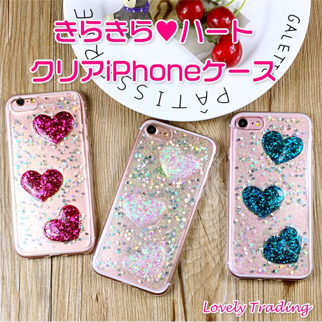 関連 :アイフォンケース、アイフォンカバー、iPhone、背面カバー、シェル型、ラメ、グリッター、きらきら、ハート、Heart、3連、クリア、濃ピンク、桃、青、可愛い、キュート、女性的、人気、おすすめ