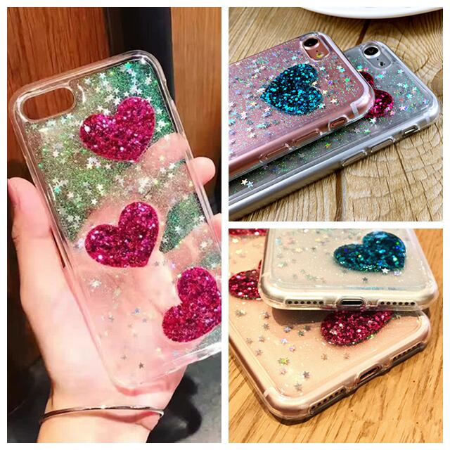 グリッター ハート ラメ iPhone シェルカバー クリアケース ( ローズ ピンク ブルー ) きらきら 女の子 ★ iPhone 6 / 6s / 6Plus / 6sPlus / 7 / 7Plus / 8 / 8Plus ★ [NW038]