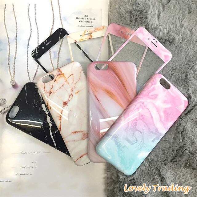 大理石風 液晶保護 iPhone シェルカバー ケース スクリーンプロテクター (ブラック ホワイト ピンク ピンク×ブルー ) ★ iPhone 6 / 6s / 6Plus / 6sPlus / 7 / 7Plus / 8 / 8Plus ★ [NW040]